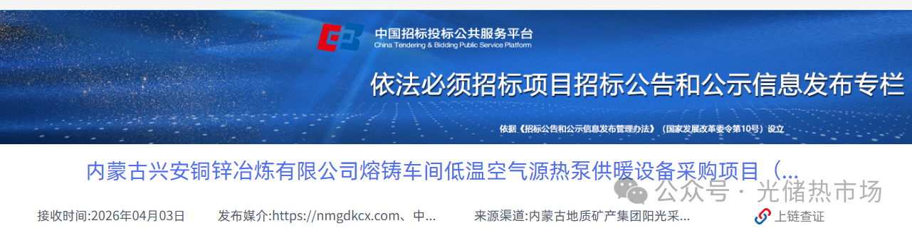 » 内蒙古兴安铜锌冶炼有限公司熔铸车间低温空气源热泵供暖设备采购项目
