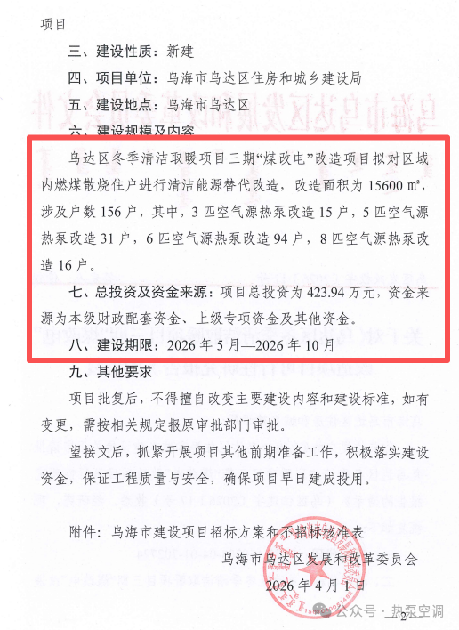 » 内蒙古:乌达区“煤改空气源热泵”项目获批复