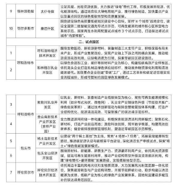 附件:内蒙古自治区碳达峰试点旗县(区)和园区名单