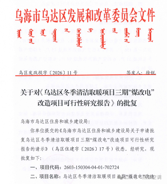 » 内蒙古:乌达区“煤改空气源热泵”项目获批复